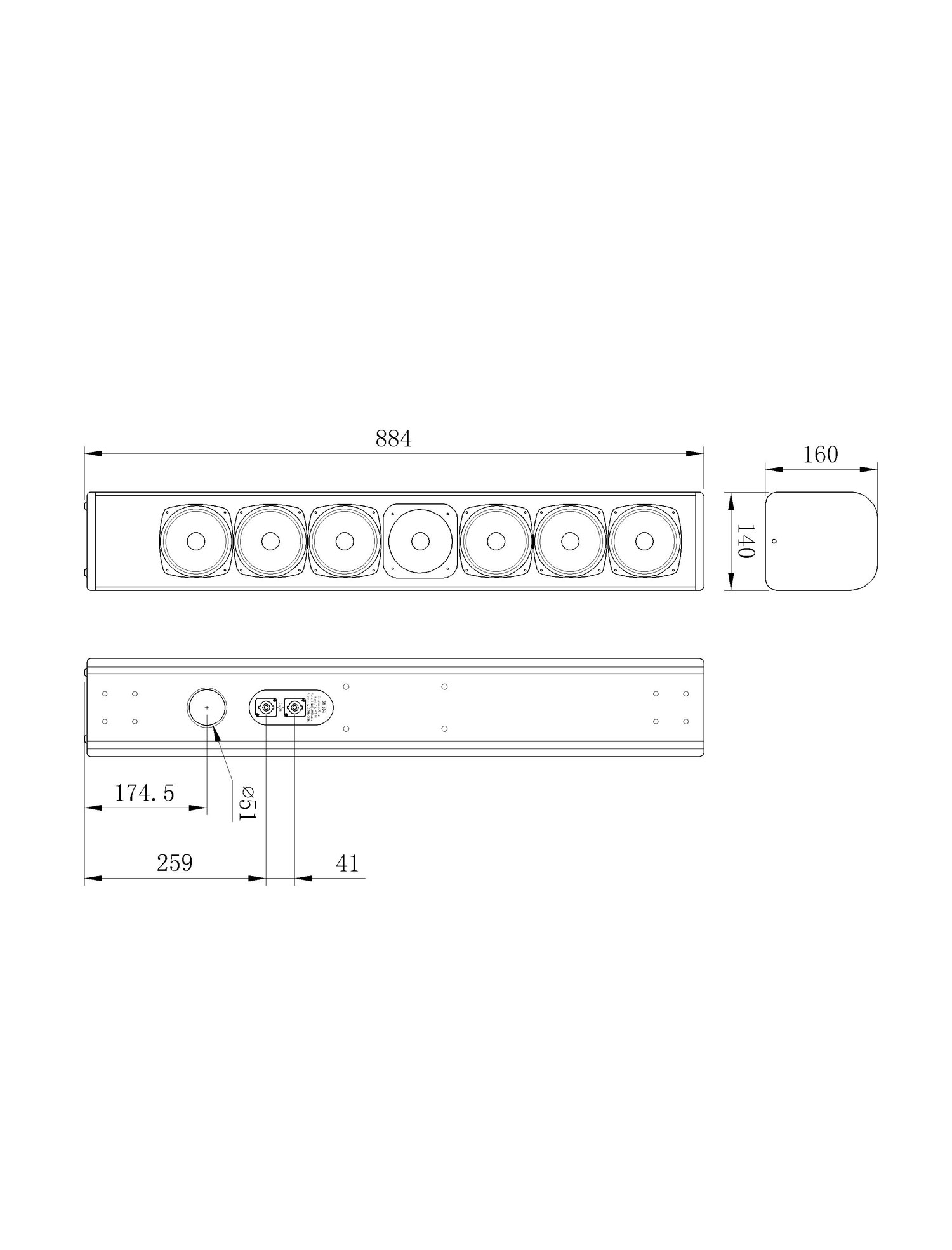 884 x 140 x 160mm