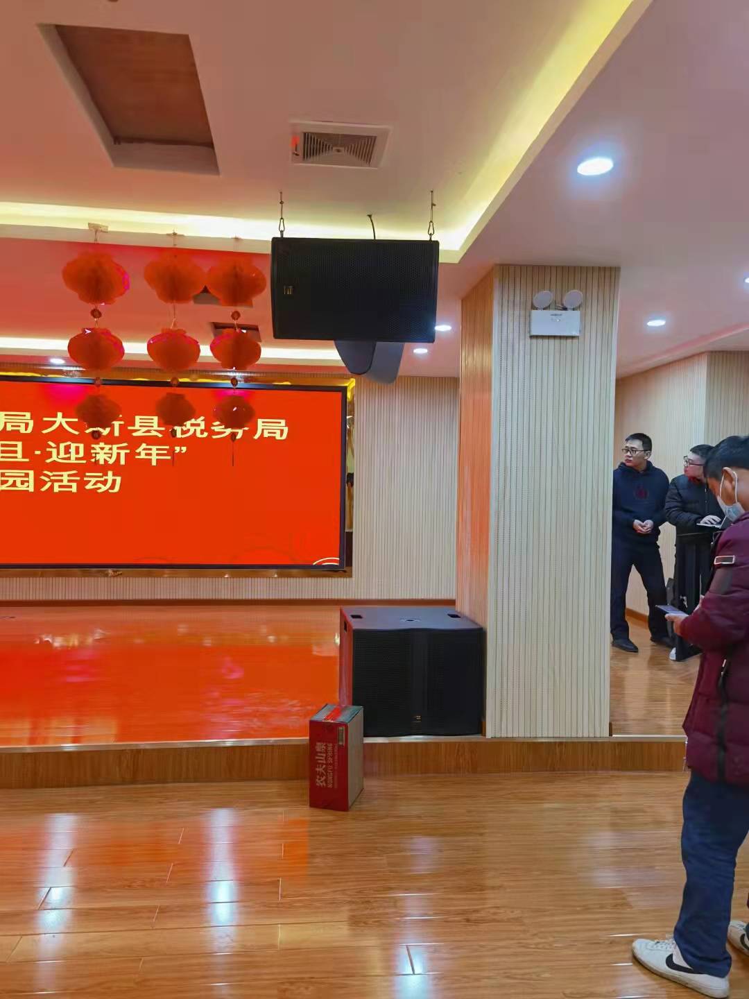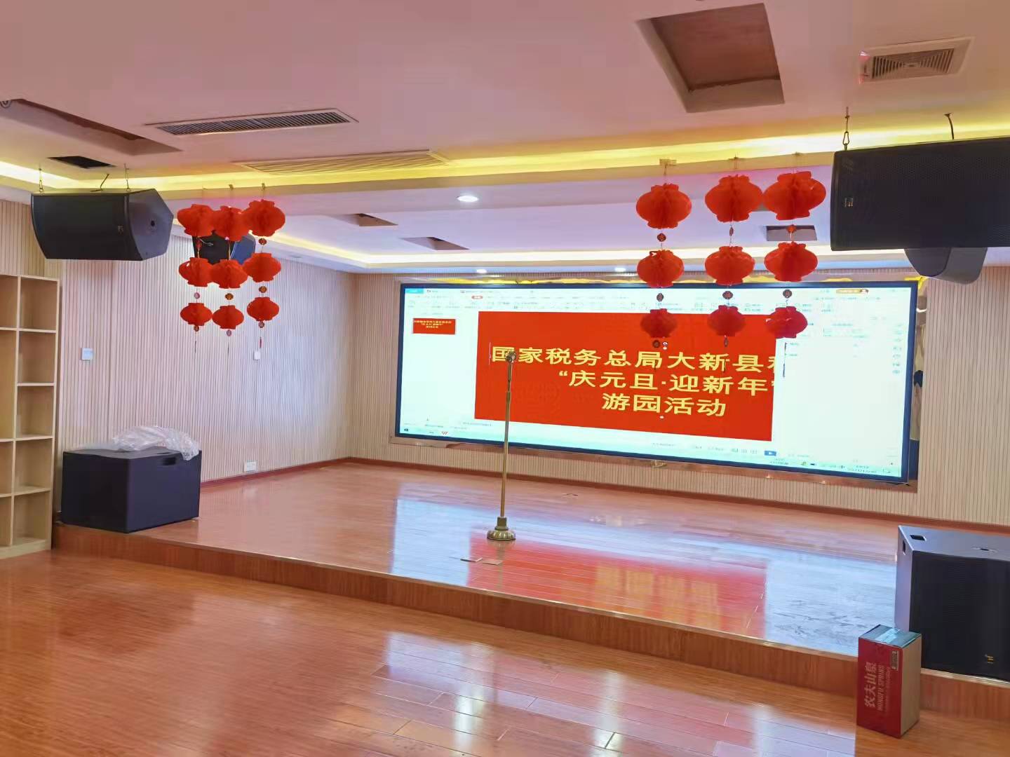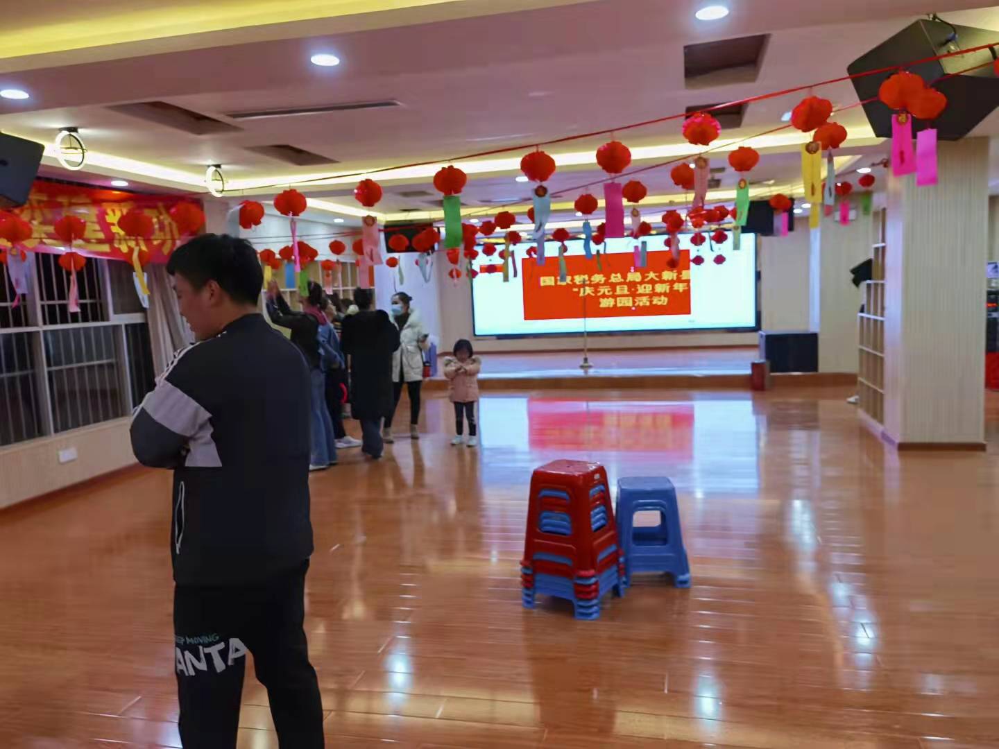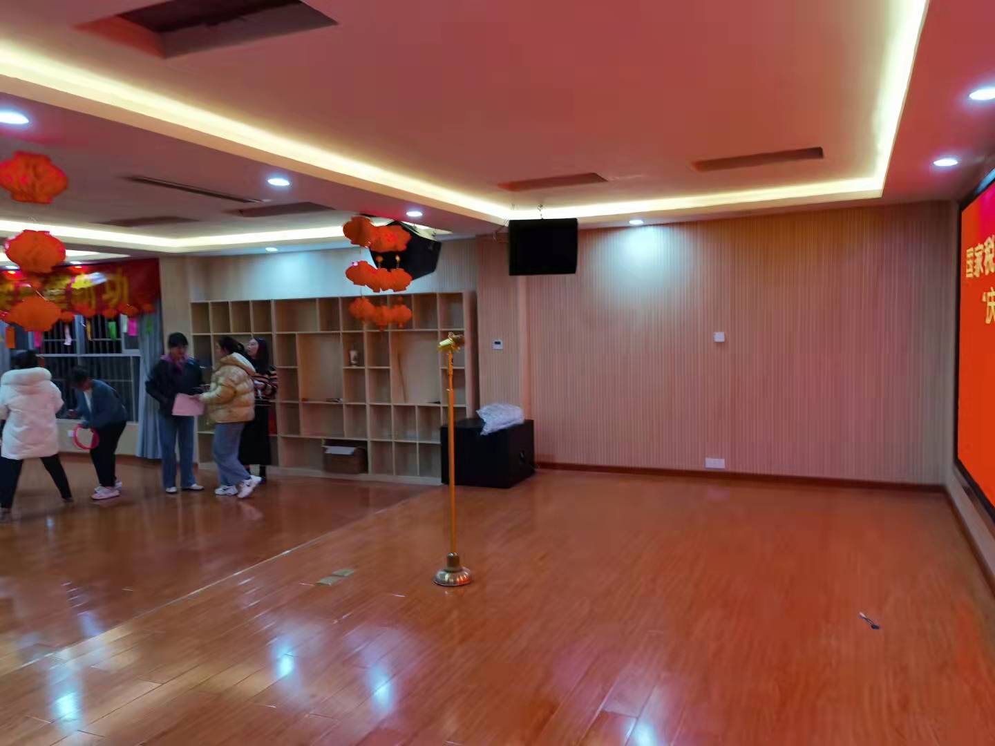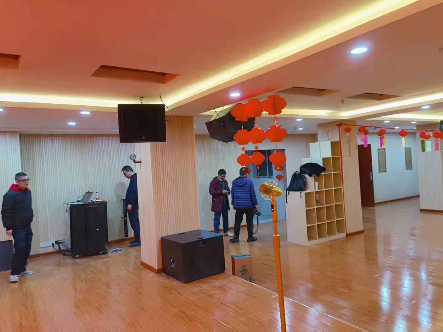 元旦当天,活动室内添置了满满的喜庆红灯笼,位于银幕下的讲台,四周配置了现场必不可少的专业音响,现场活动环节精彩不断,气氛热情高涨。
