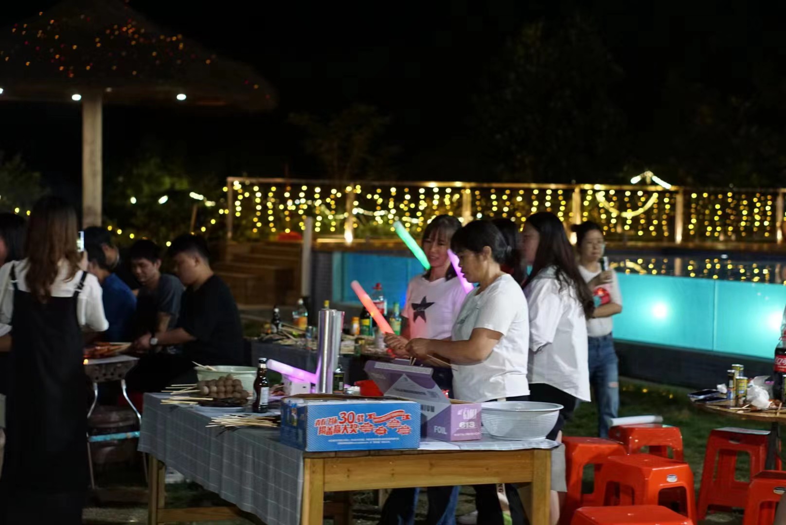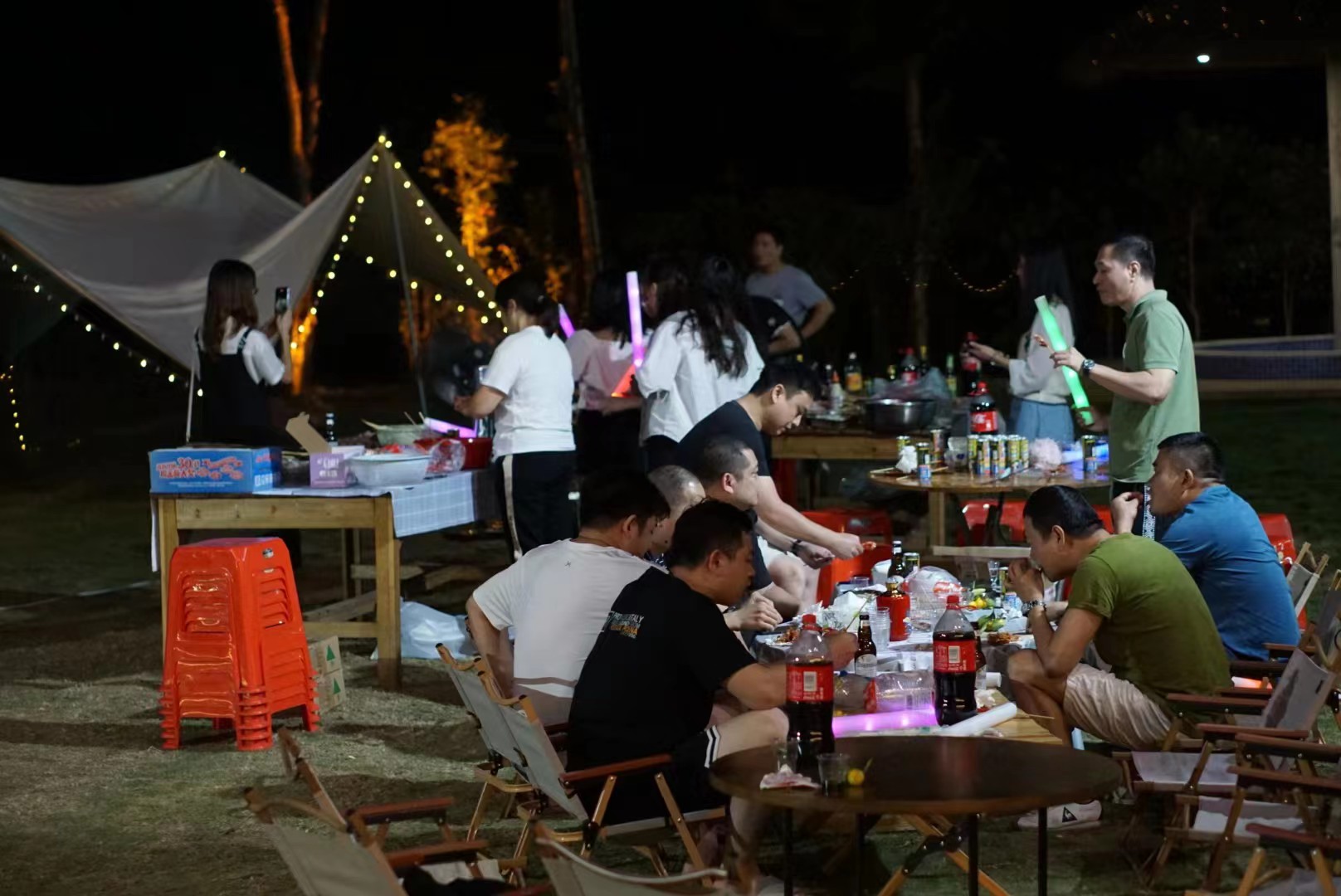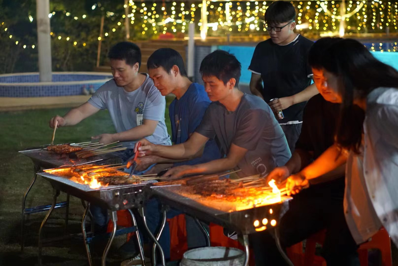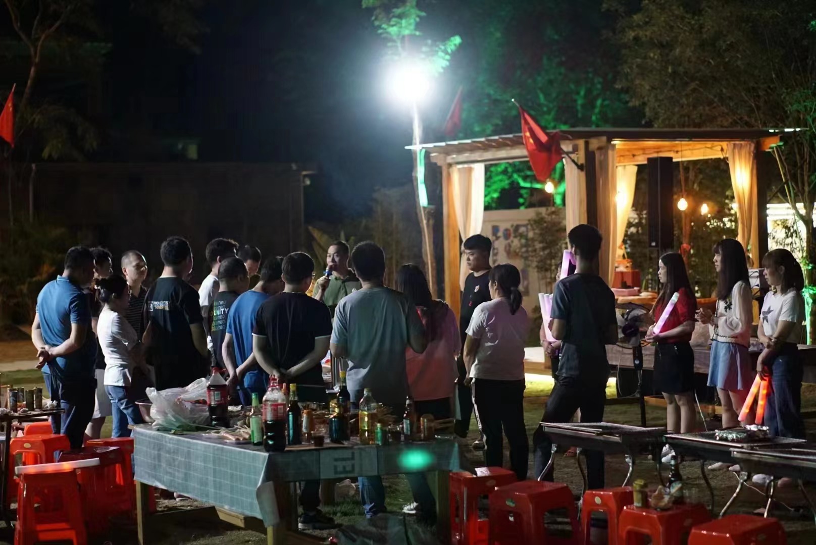 傍晚时分,此刻的我们发挥出锐建的团队合作精神,进行分组完成任务,其中有我们的音响设备搭建组、投影仪搭建组、拍摄组、游戏统筹组、准备烧烤食材的炊事组等,大伙儿齐心协力为晚上的精彩环节做充足的准备。