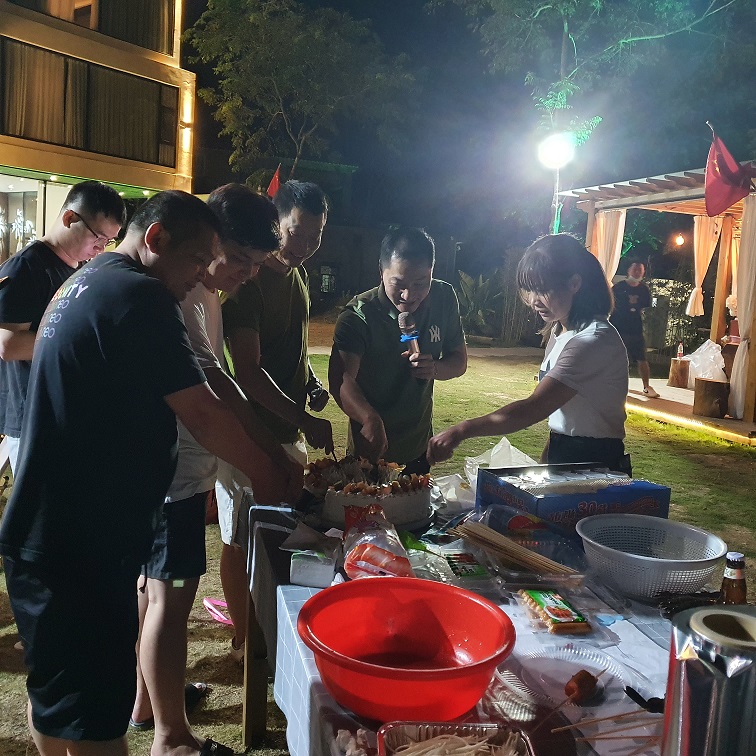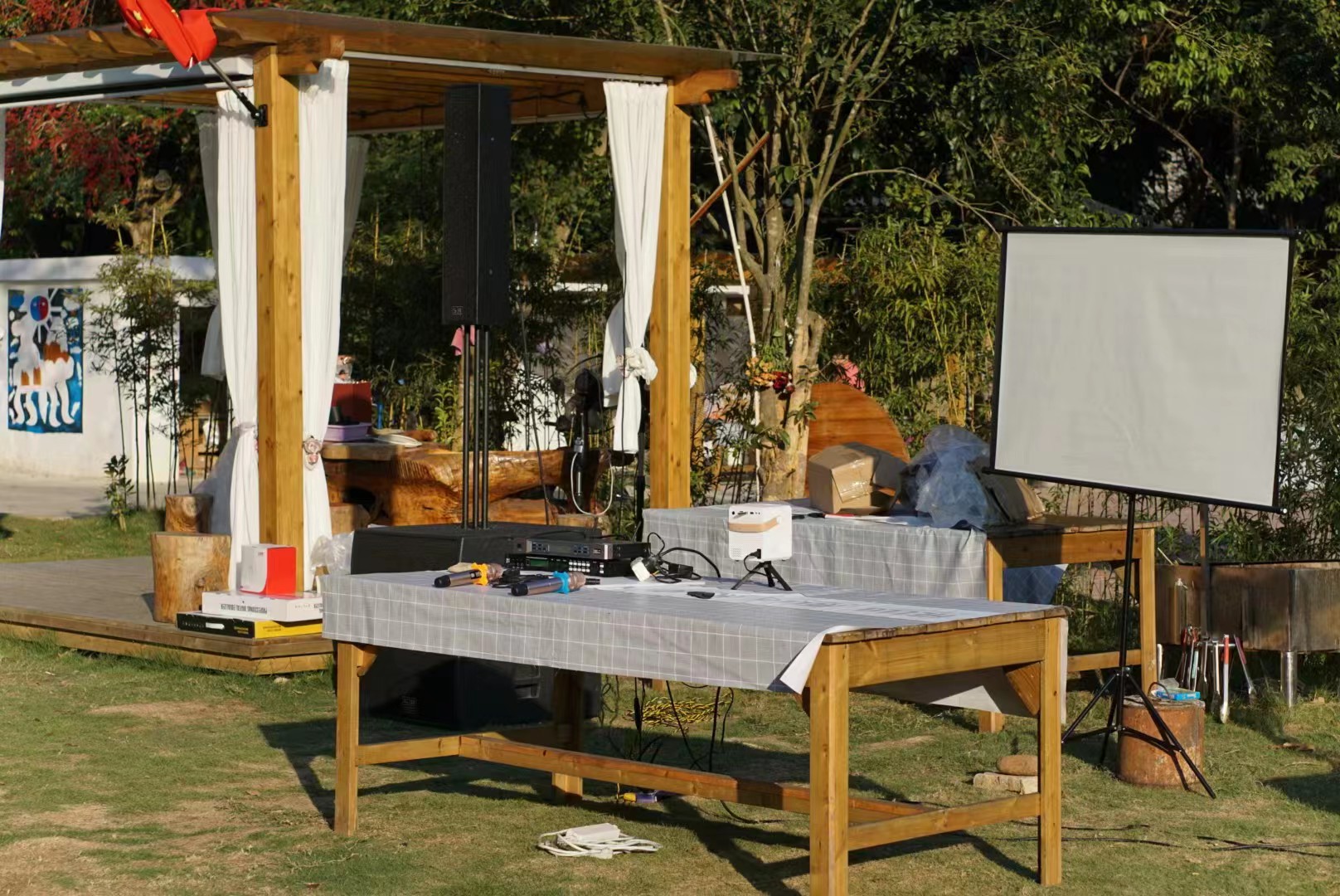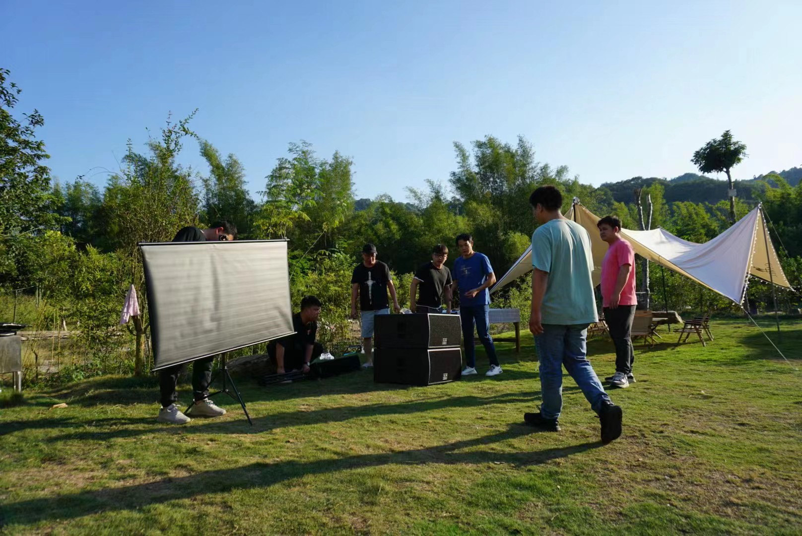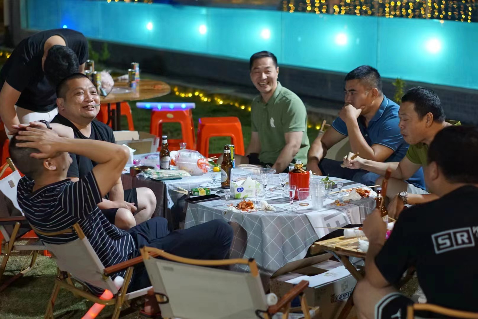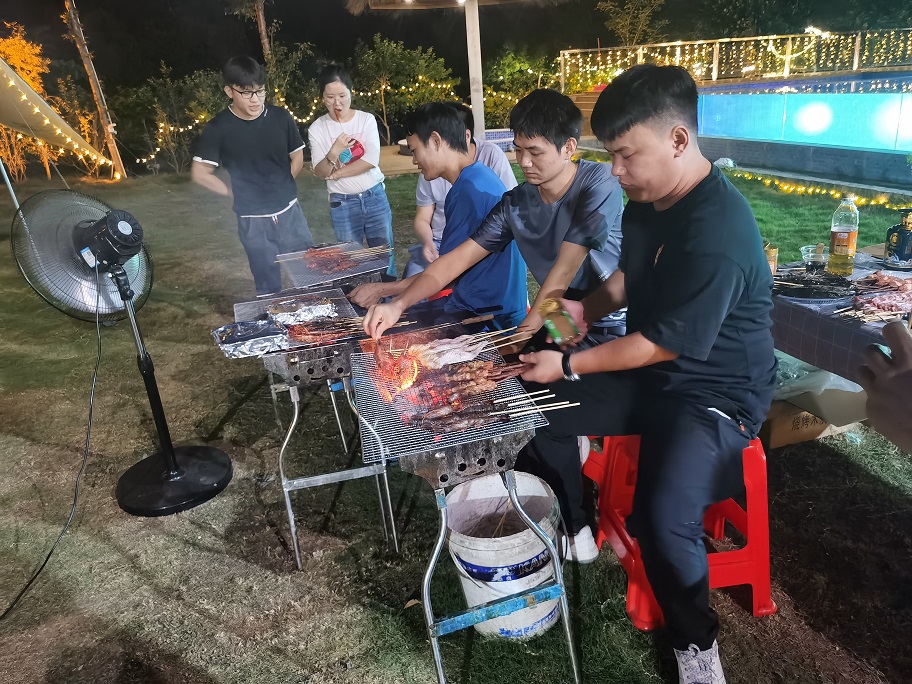 傍晚时分,此刻的我们发挥出锐建的团队合作精神,进行分组完成任务,其中有我们的音响设备搭建组、投影仪搭建组、拍摄组、游戏统筹组、准备烧烤食材的炊事组等,大伙儿齐心协力为晚上的精彩环节做充足的准备。