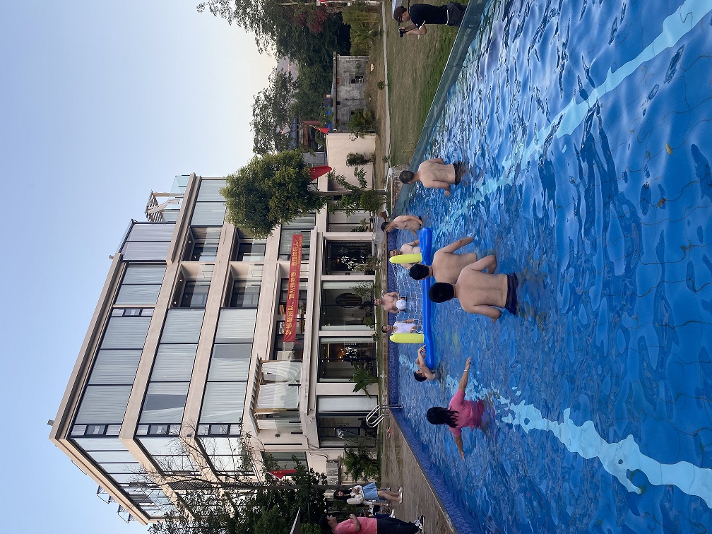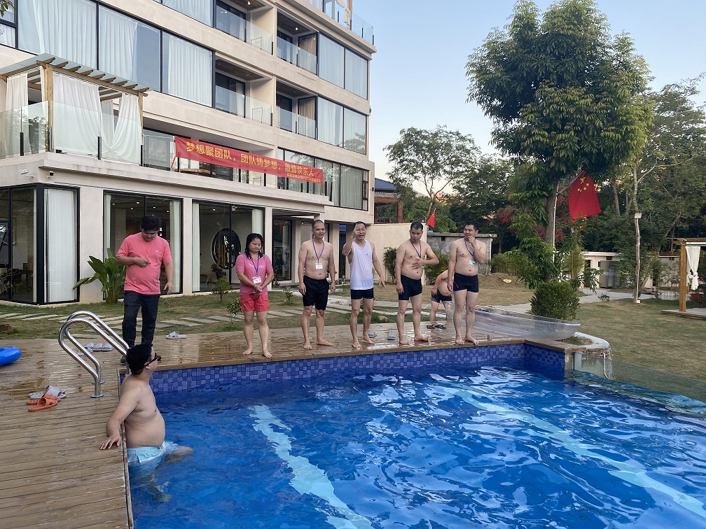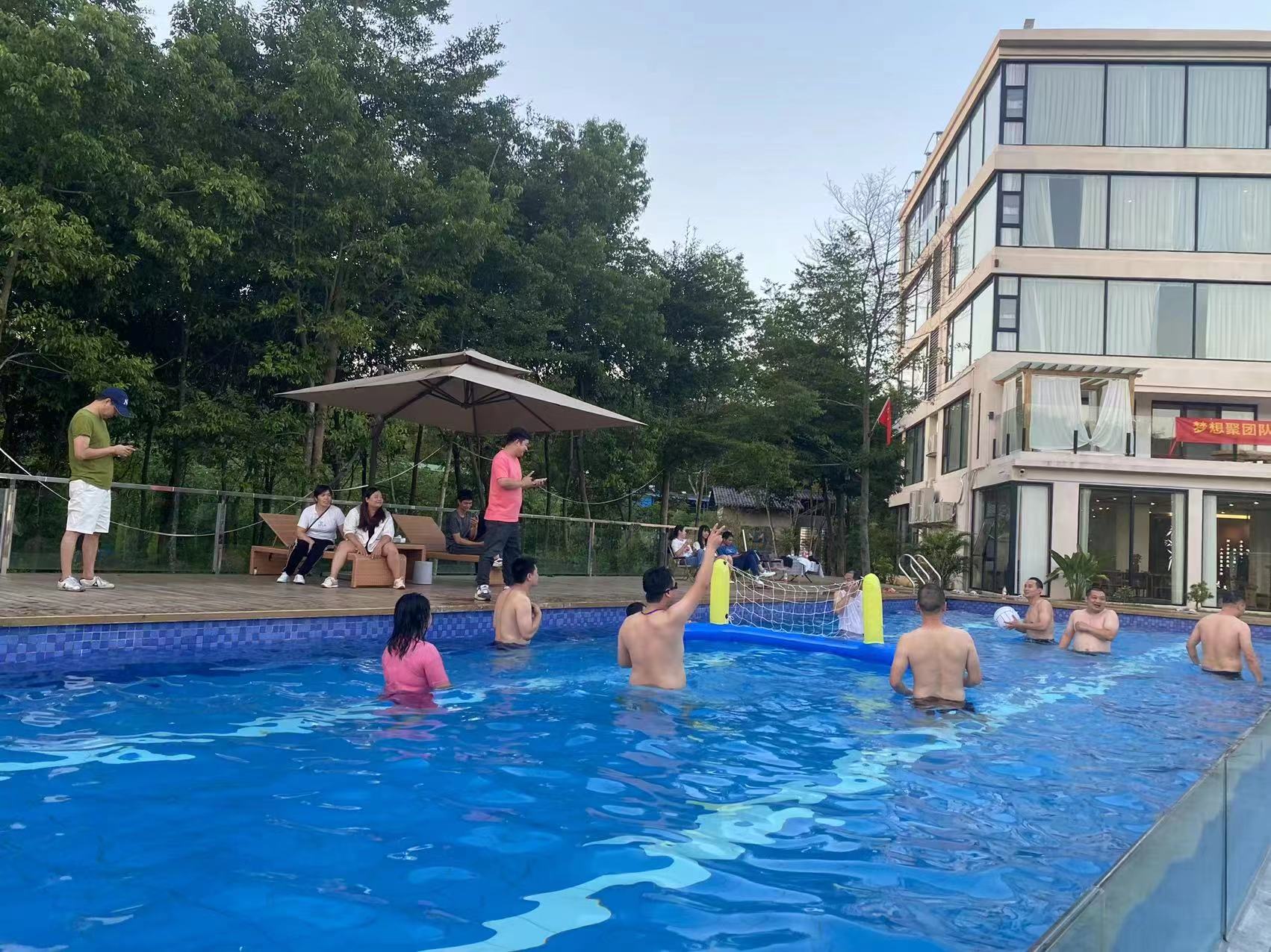 卸下行装后,已经是16:30分了,大伙儿集合在民宿的活动草地上,开始我们的团建活动。当中有狼来了、群龙取水、水上排球、游泳比赛等,游戏一个接一个,游戏中大伙儿使出浑身解数,越挫越勇,气氛热情高涨......