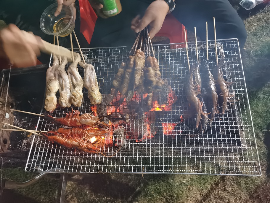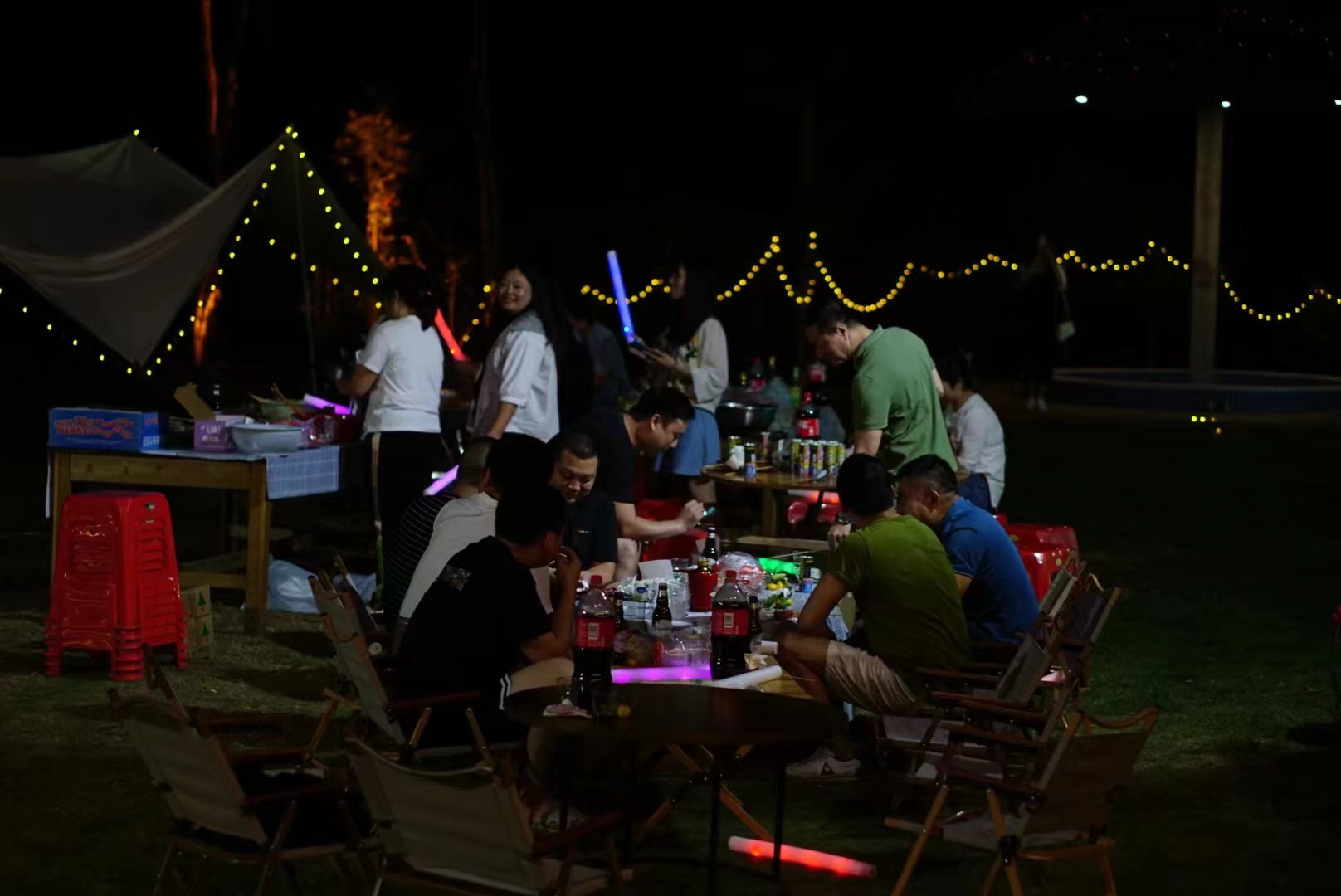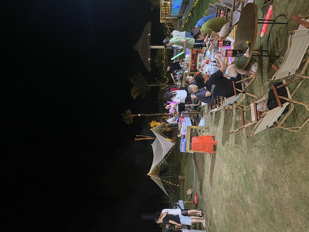 入夜了,我们的音响搭建组奏起了柔和的音乐,在这曼妙的氛围中品尝美味的海鲜烧烤盛宴。时而载歌,时而载舞,台下一阵阵的欢呼声挥动着闪闪发光的荧光棒,仿佛走进了一场大型的演唱会现场,纷纷陶醉在美妙的歌声中!
