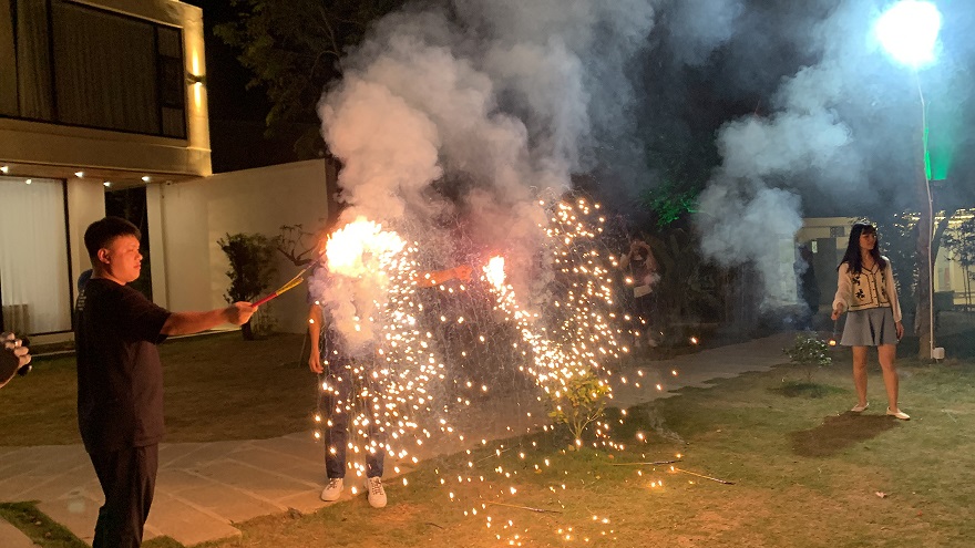 值此跌宕起伏的氛围里,当然少不了游戏统筹组特别推出的重头戏“烟花满天飞”,点燃烟花的那一瞬间,像极了百花齐放的壮观景象,像极了一飞冲天的神舟一号,像极了空中的跳舞女郎。花式层出不穷。