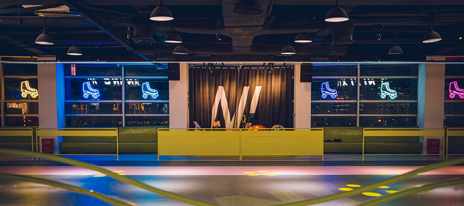 河源市NI想滑轮运动基地装潢设计参入丰富的时尚色彩,特显年轻人热爱缤纷活力的世界。在无拘无束的环境内体验上喜欢的滑轮运动,运动的同时配上富有活力的时尚音乐,使在场的运动爱好者有一种宾至如归的体验。
