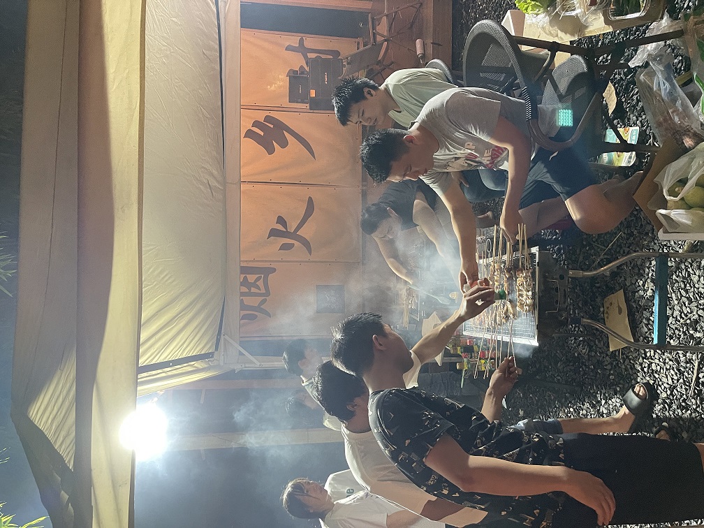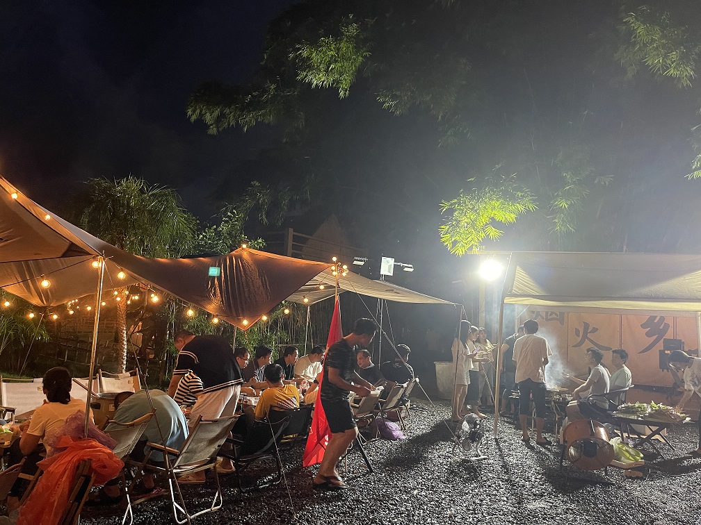 夜已深,但精彩还在后面,大伙儿聚在一起喝喝啤酒、聊聊人生,轻松自在,其乐融融。