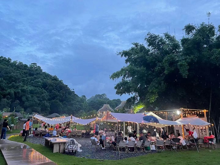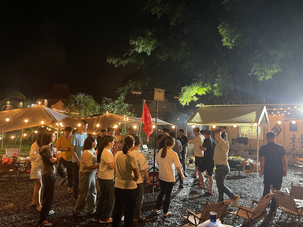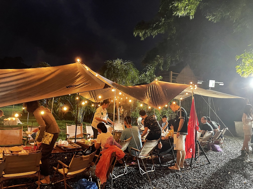 入夜了,我们的音响搭建组奏起了柔和的音乐,在这曼妙的氛围中品尝美味的烤肉盛宴。时而载歌,时而载舞......