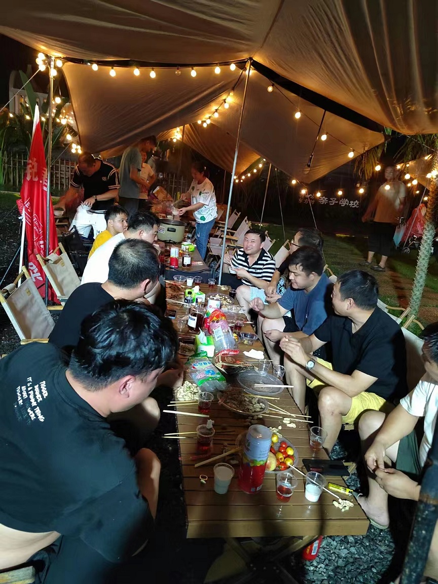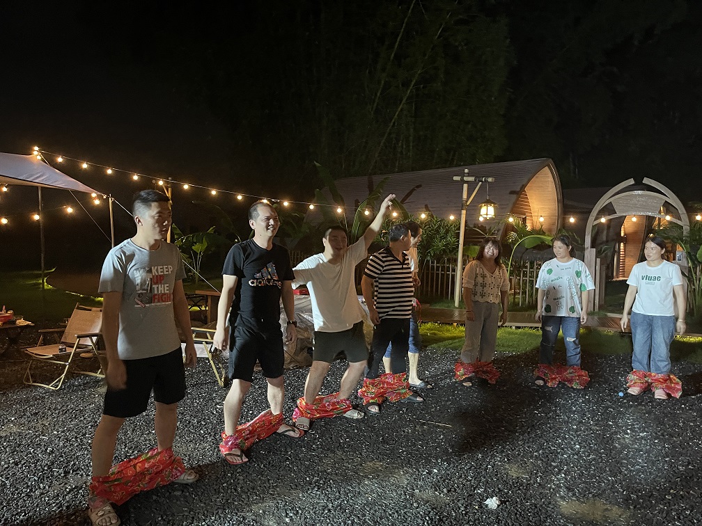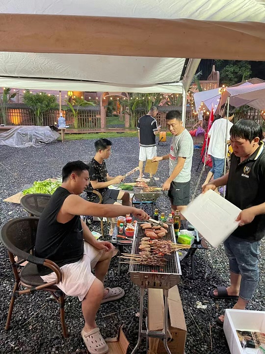 一边烧烤一边开始我们的团建活动,当中有电臀达人(又名公鸡下蛋)、穿裤子等,游戏有奖有罚,获胜的成员可获得现金奖,输的一方则要受到惩罚“现场走秀”,游戏一个接一个,游戏中大伙儿使出浑身解数,越挫越勇,气氛热情高涨......