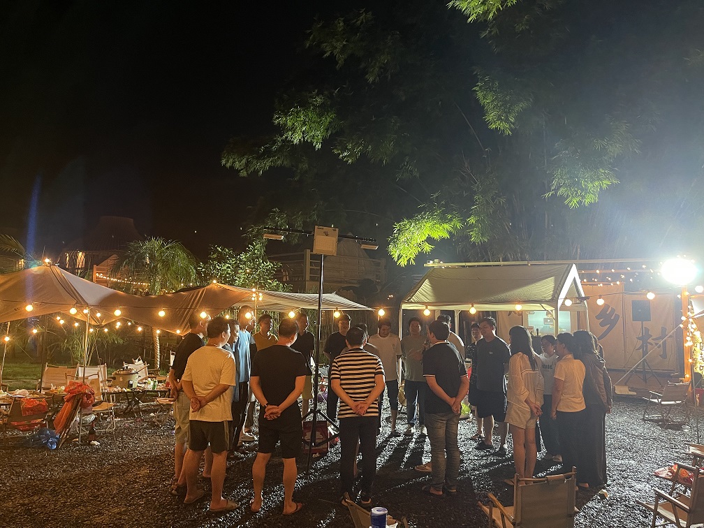 傍晚时分,此刻的我们发挥出锐建的团队合作精神,进行分组完成任务,其中有我们的音响设备搭建组、投影仪搭建组、拍摄组、游戏统筹组、准备烧烤食材的炊事组等,大伙儿齐心协力为晚上的精彩环节做充足的准备。