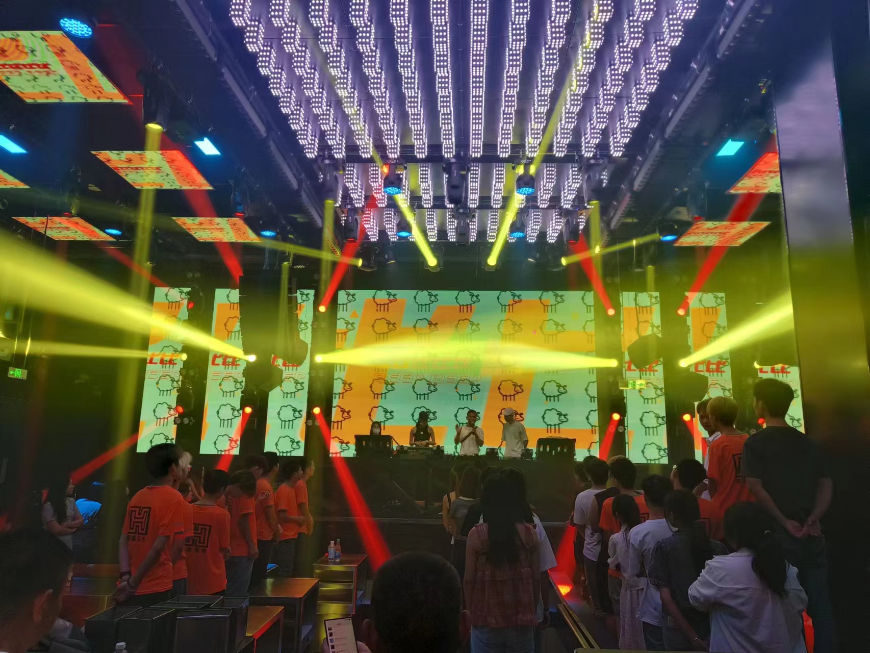 现场视觉、灯光、音乐三者紧密连接,在这样一个充满“科技”、“未来”、“梦幻”之地,酷炫的人像装饰搭配灯光冲击人的视觉神经,时尚舞曲点燃人内心的欢愉,汇聚为一个又一个跳动激情的不眠夜。