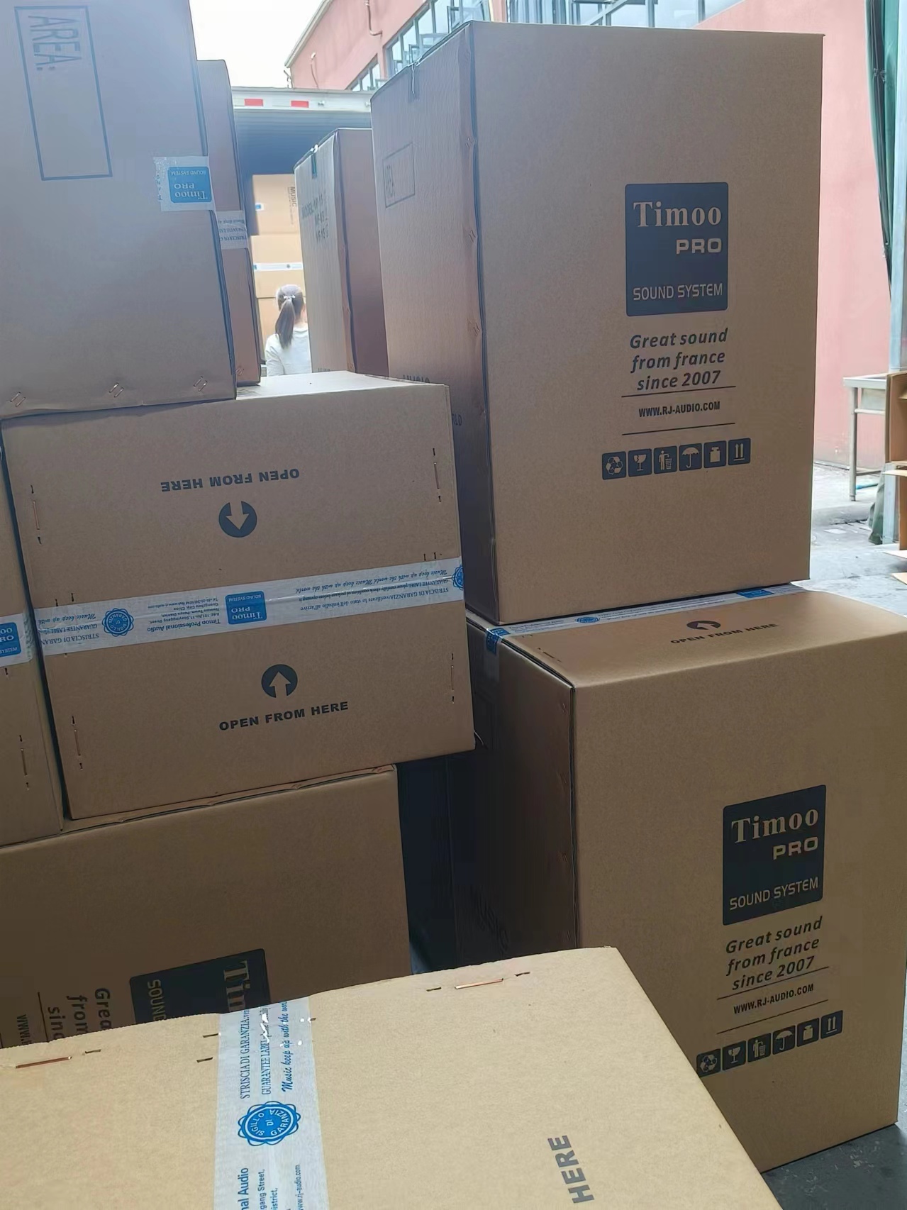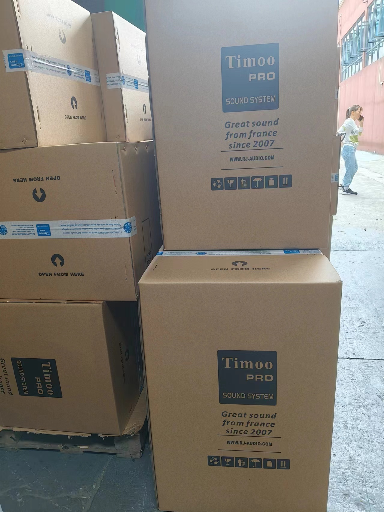 在这风和日丽的午后,锐建电声国际旗下产品法国天牧Timoo专业音响,按时按质顺利完成出货,发货走起!
