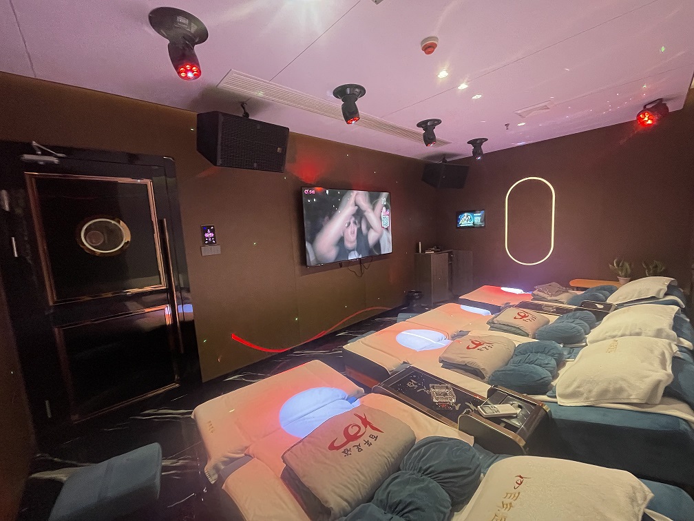K歌沐足是湖南省人气极旺的娱乐场所,综合先进的管理,专业人才的配备,吸引大众眼球的时尚潮流装潢,为了给广大消费者呈献最完美的音效,经过对众多著名品牌的多轮严苛测试比较,湖南K歌沐足全面采用广州锐建电声国际提供的法国天牧Timoo专业音响。