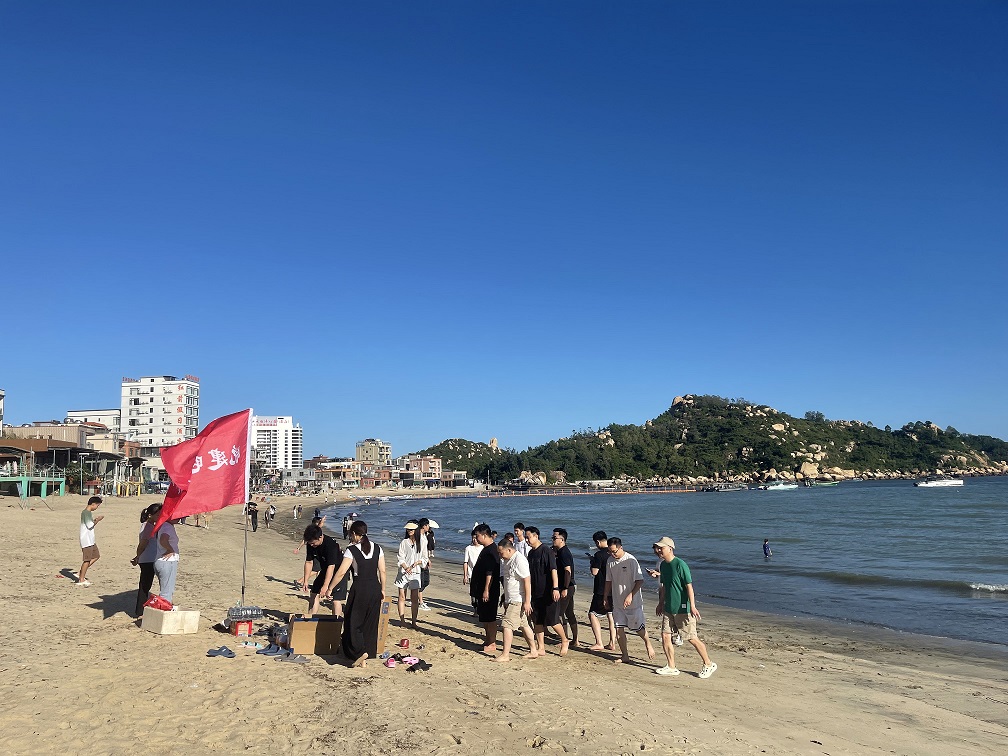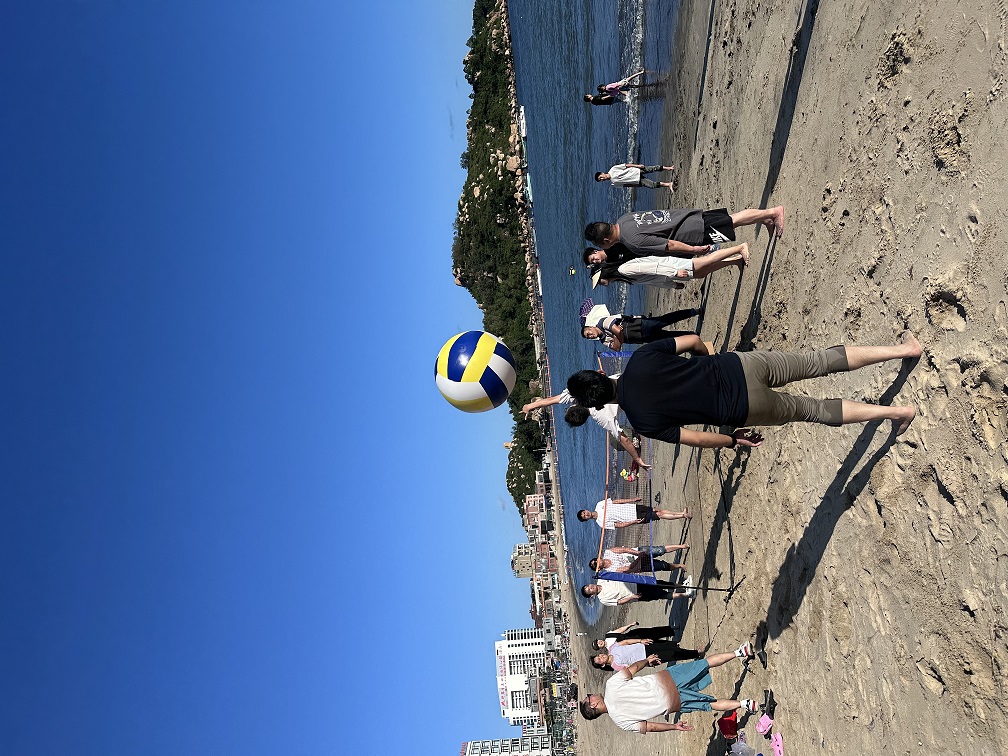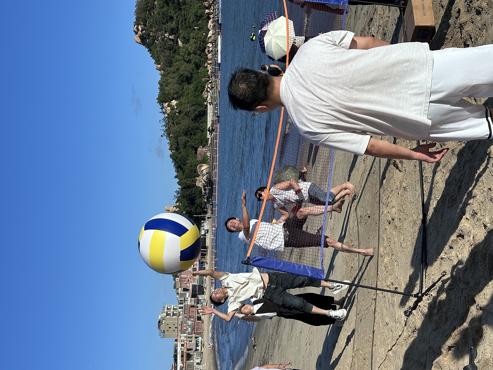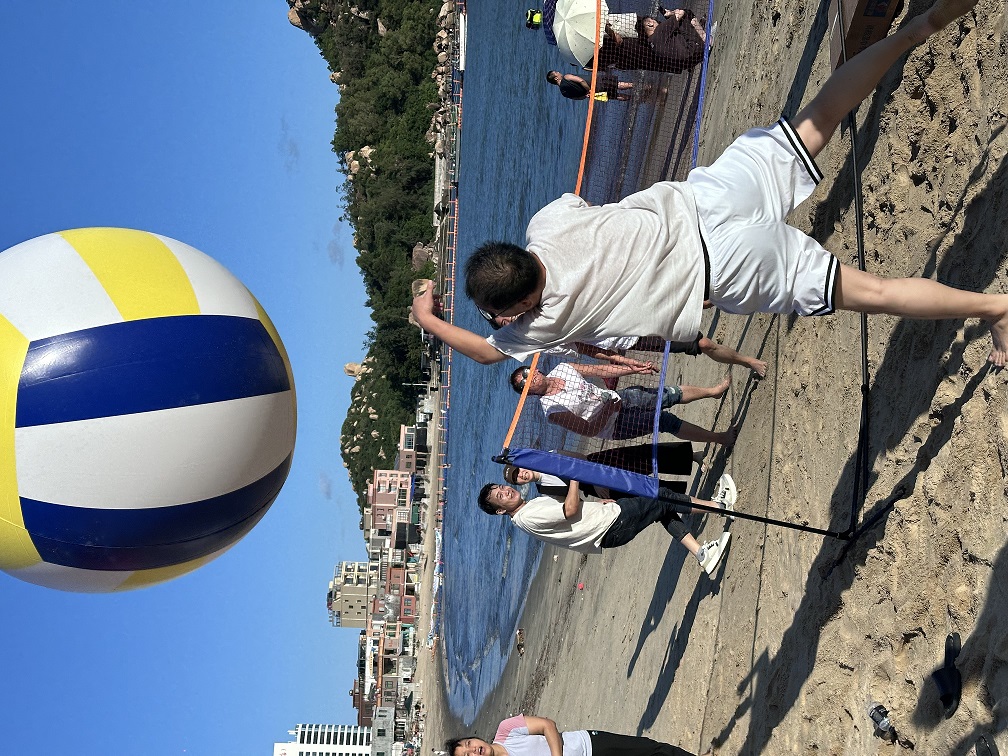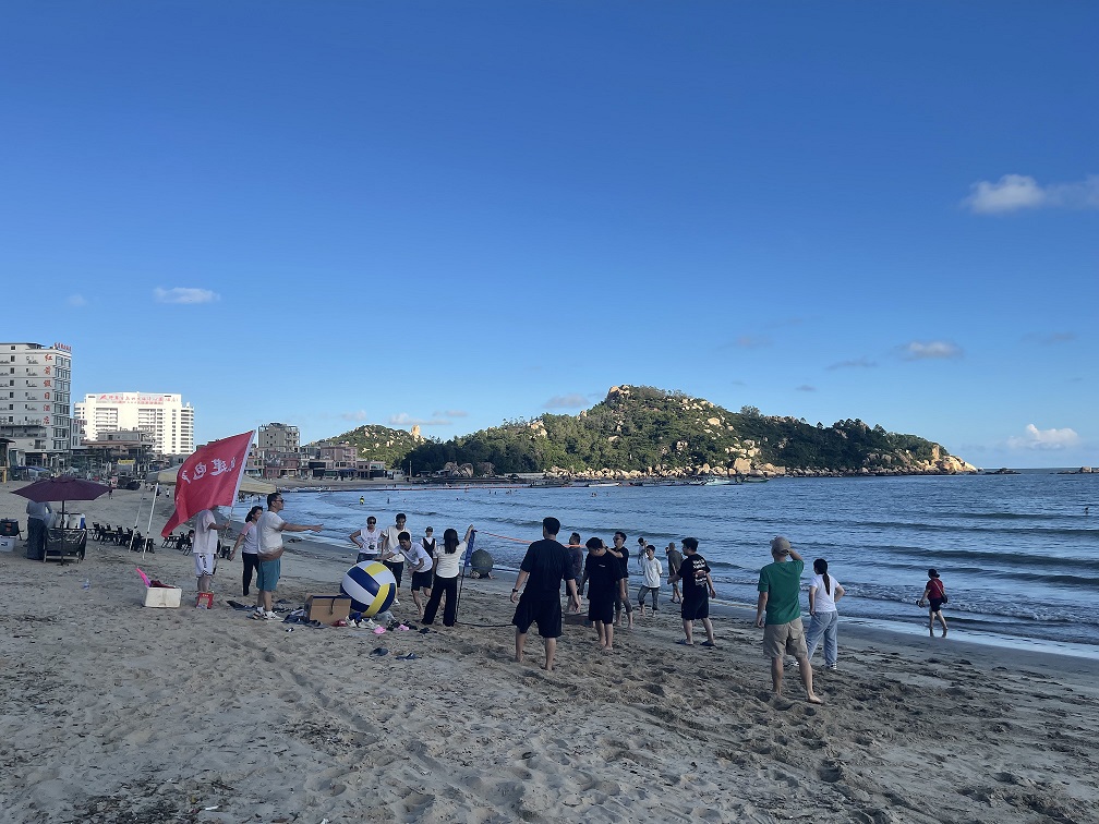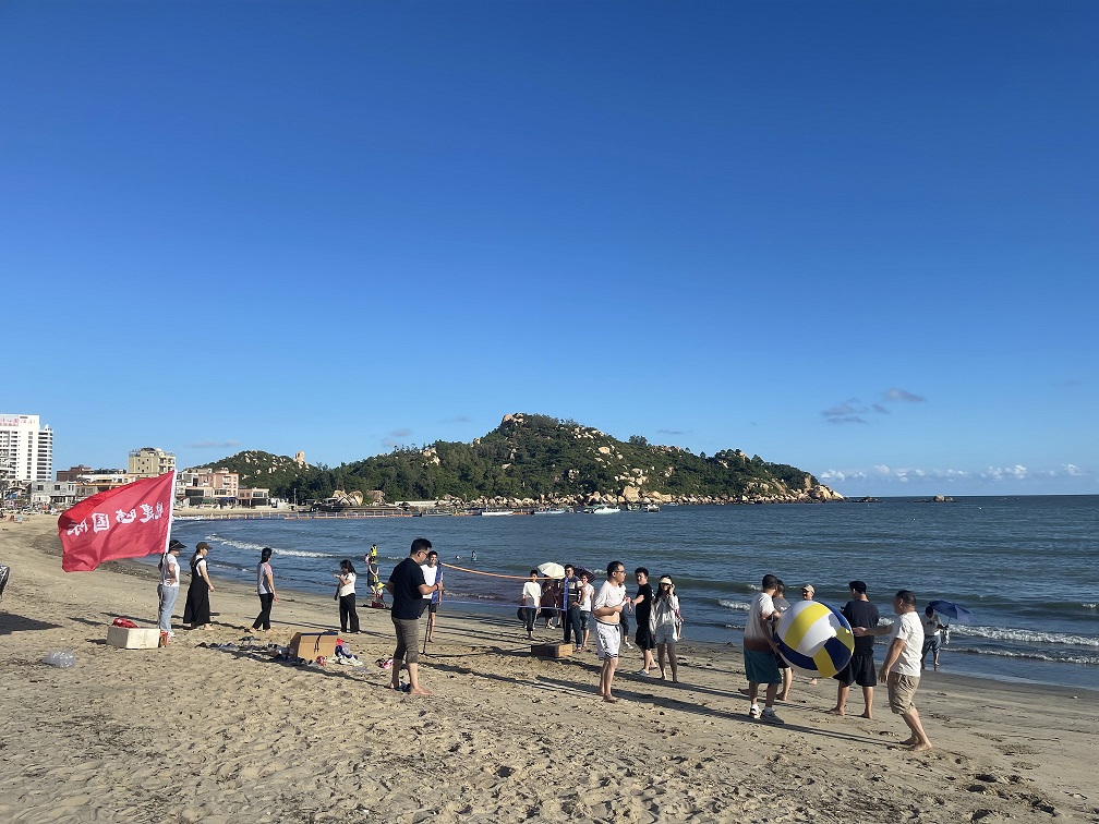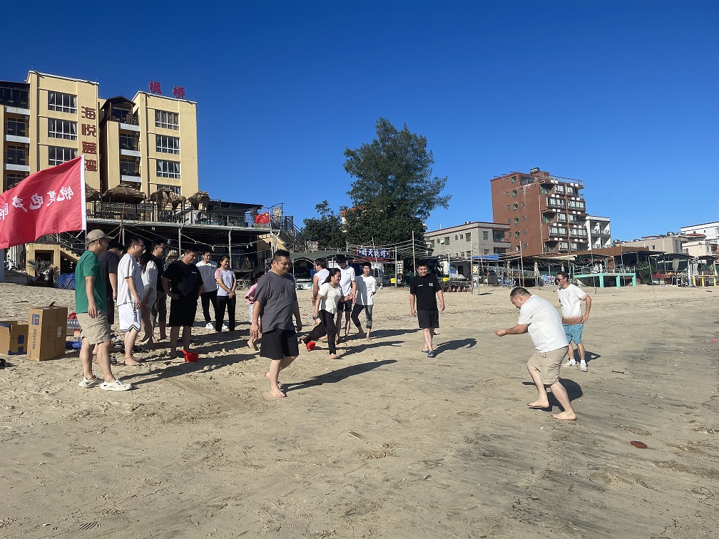 休息整顿好后,已经是16:30分了,大伙儿集合在酒店大堂,一同前往沙滩,开始我们的团建活动。活动安排有捧水放置水桶、摸水瓶、沙滩排球、水枪打水仗等,比赛分成两组,组员之间发挥出团队的合作精神,誓要一决高下。活动一个接一个,大伙儿使出浑身解数,越挫越勇,气氛热情高涨......