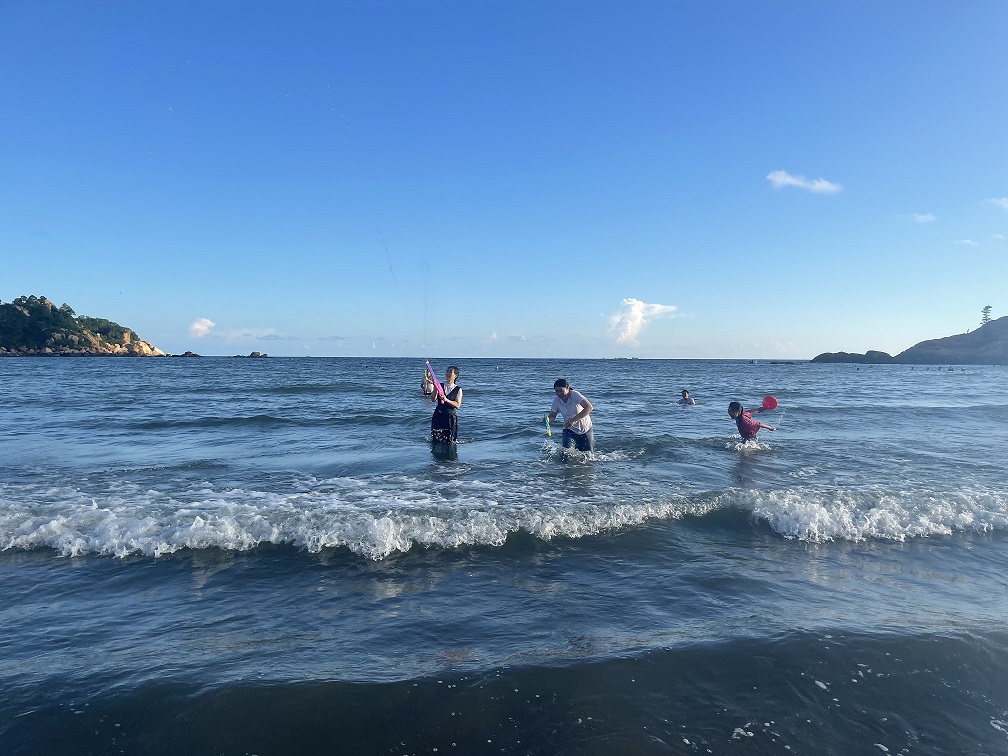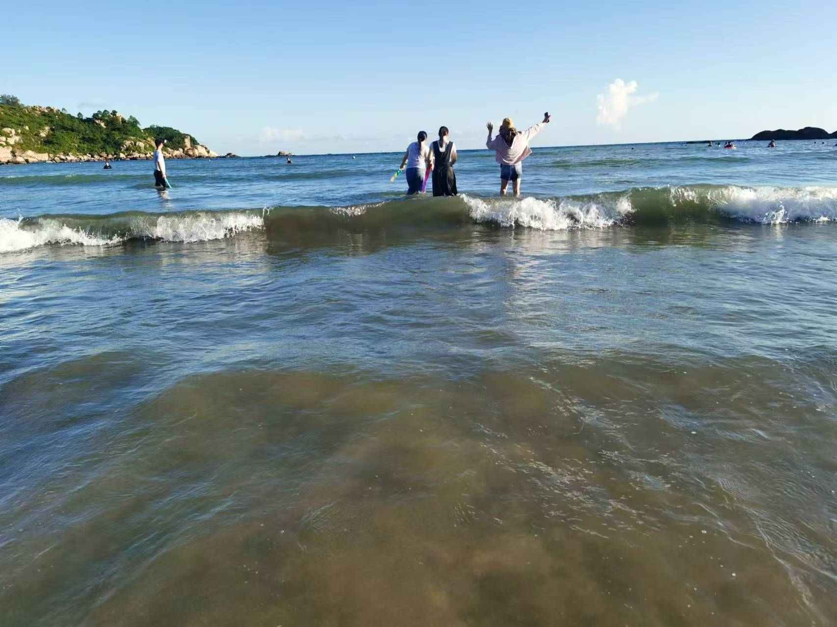 下午一时许,我们抵达台山市尾角湾渔村,沿途风景秀丽,一路都是当地渔村的特色海鲜饭店以及海味特产自营店。还没吃午饭的我们,被沿路的海鲜饭店所吸引,迫不及待地开启我们在尾角湾的第一顿丰盛的海鲜午餐。用过午餐后,继续前往目的地--尾角湾。我们到达预订好的酒店,依行程安排入住酒店,有两个多小时的休息时间,整理行装,稍作休息。比较向往沙滩的小伙伴已经迫不及待地到沙滩预热了一番。