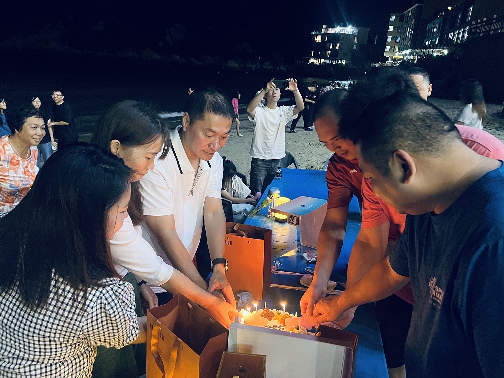 晚上9点,大伙儿集合在沙滩,共庆锐建电声国际迎来第十九周岁的生日。风雨同舟,一步一脚印,都离不开公司的苦心经营以及大伙儿的用心维护。愿我们继续逐梦前行!