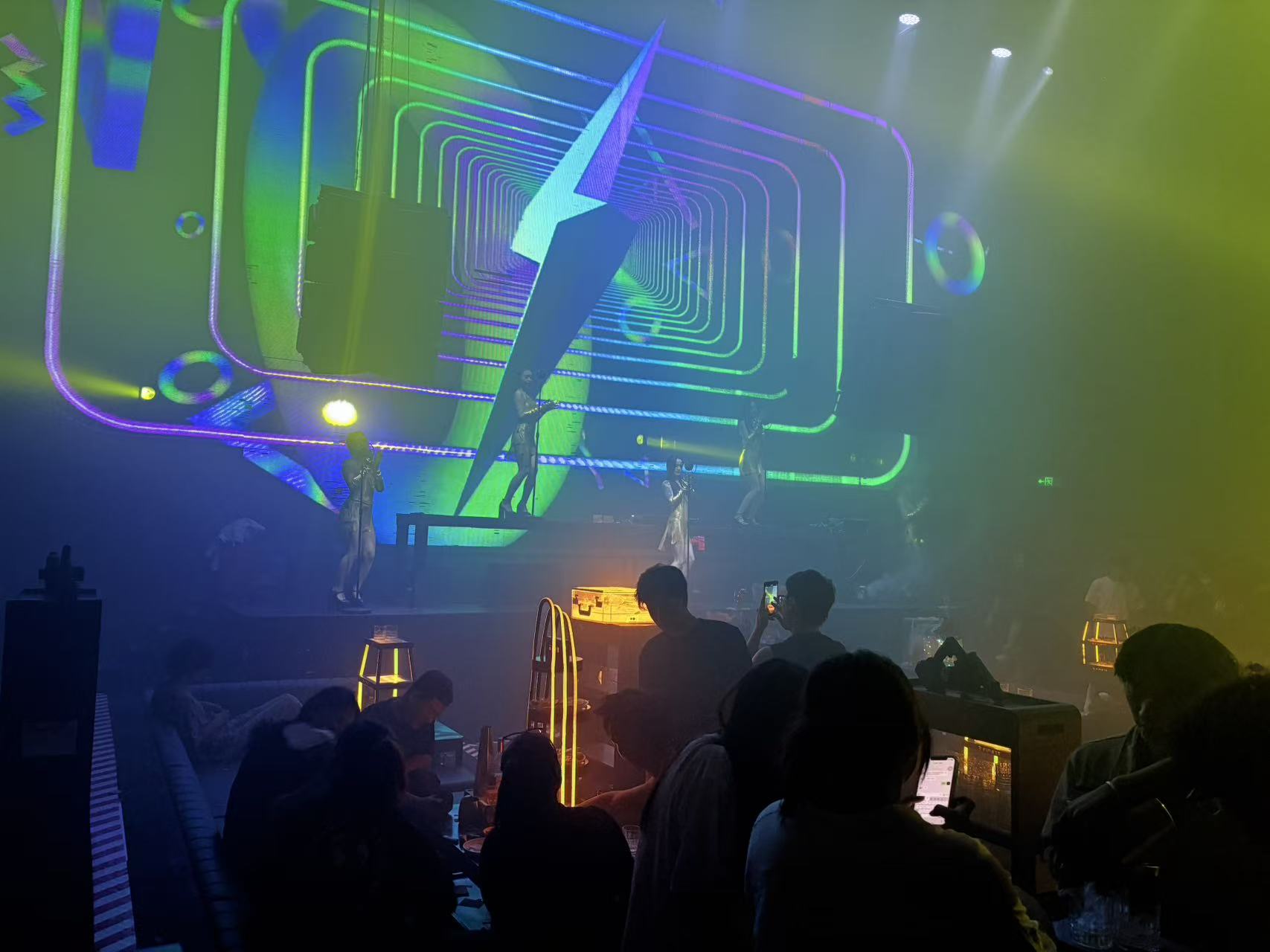 现场视觉、灯光、音乐三者紧密连接,在这样一个充满“科技”、“未来”、“梦幻”之地,酷炫的人像装饰搭配灯光冲击人的视觉神经,时尚舞曲点燃人内心的欢愉,汇聚为一个又一个跳动激情的不眠夜。