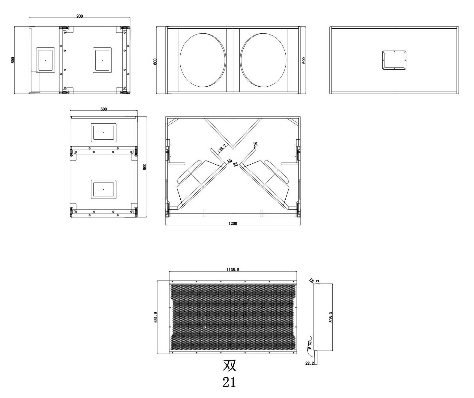 | 单元规格 | 2×21〞 (135mm 音圈 ) |